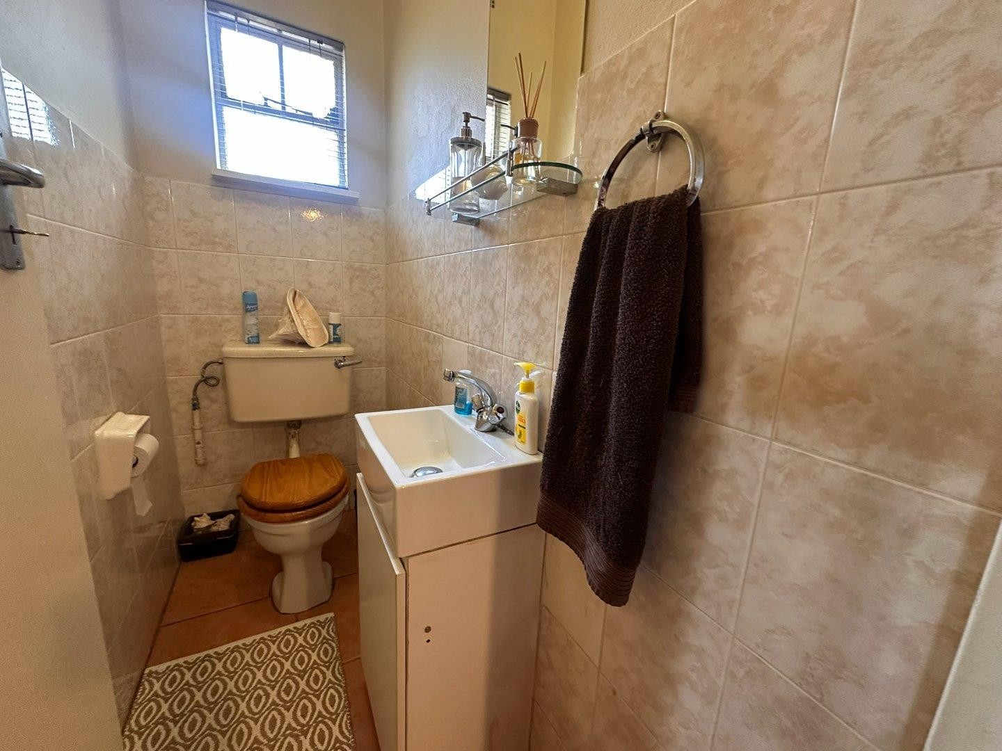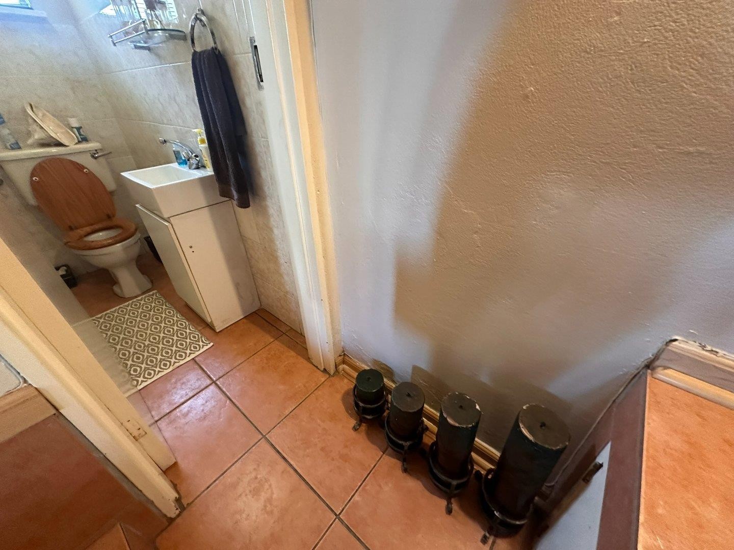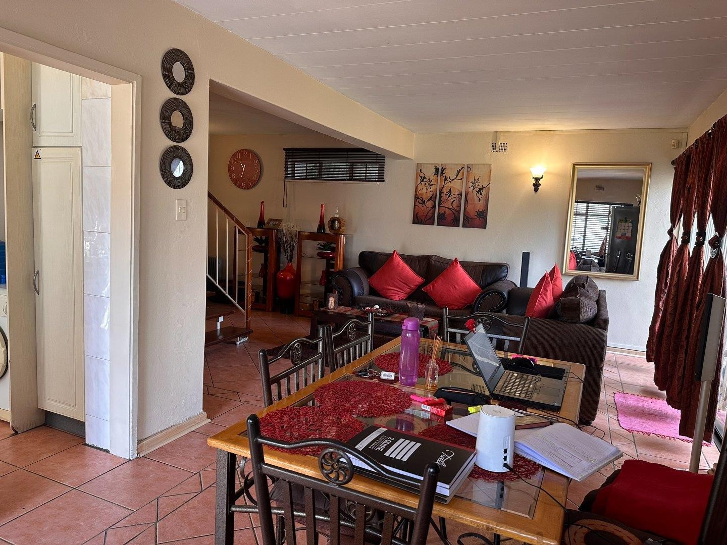 Downstairs is a guest toilet + huge tiled lounge and dining room + kitchen with lots of bic's