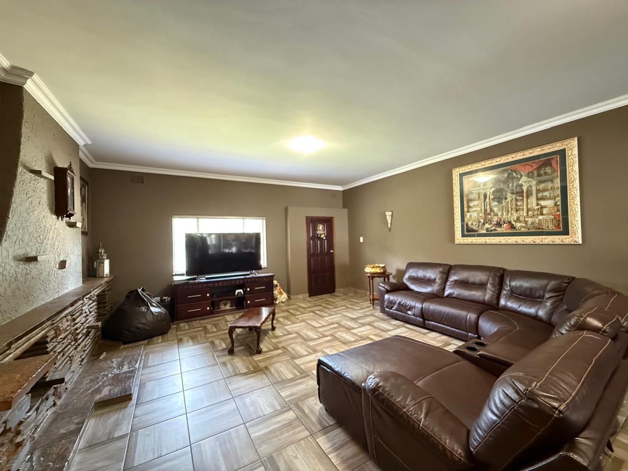 Open-plan lounge with doors leading to a HUGE enclosed entertainment area