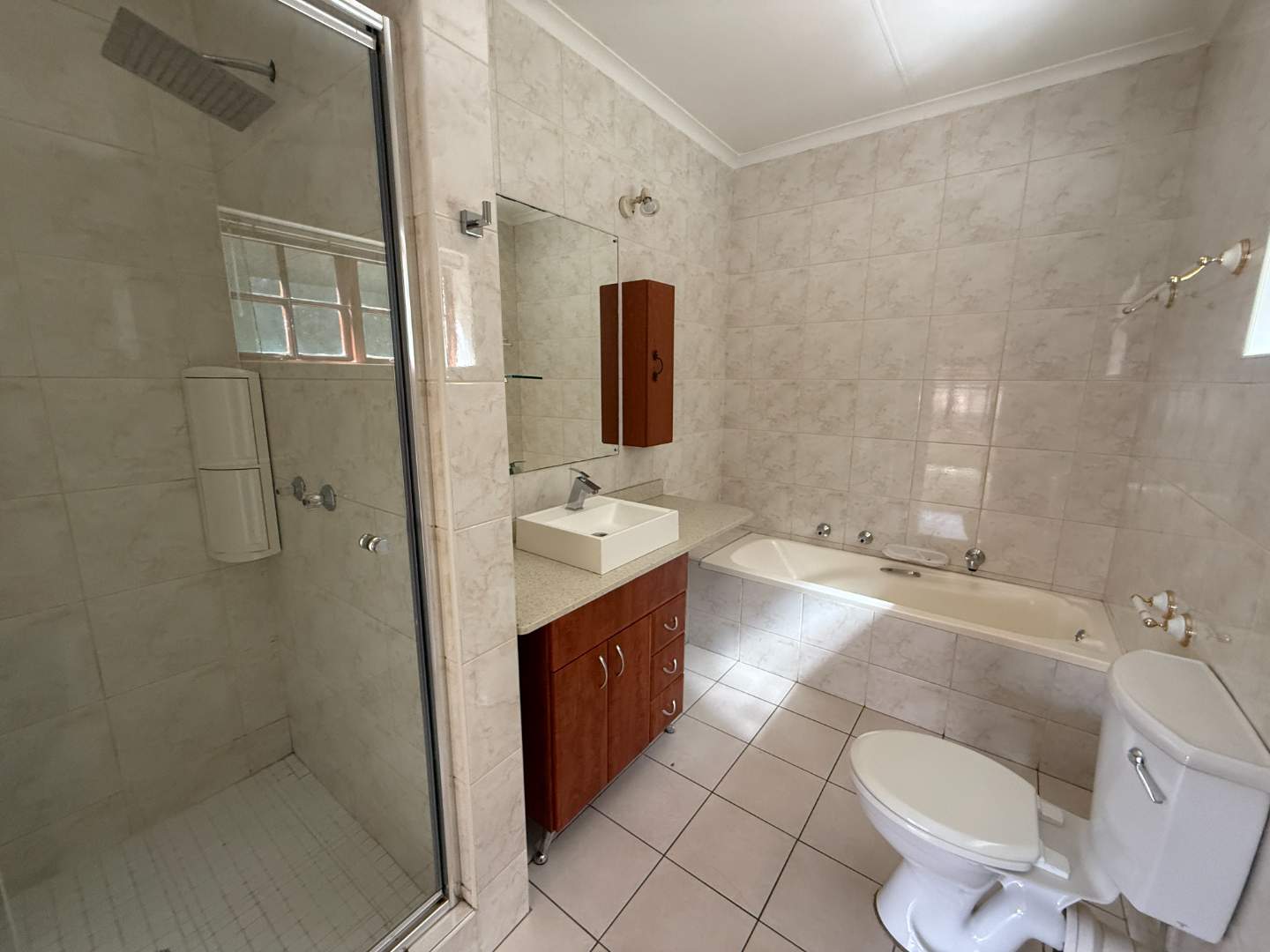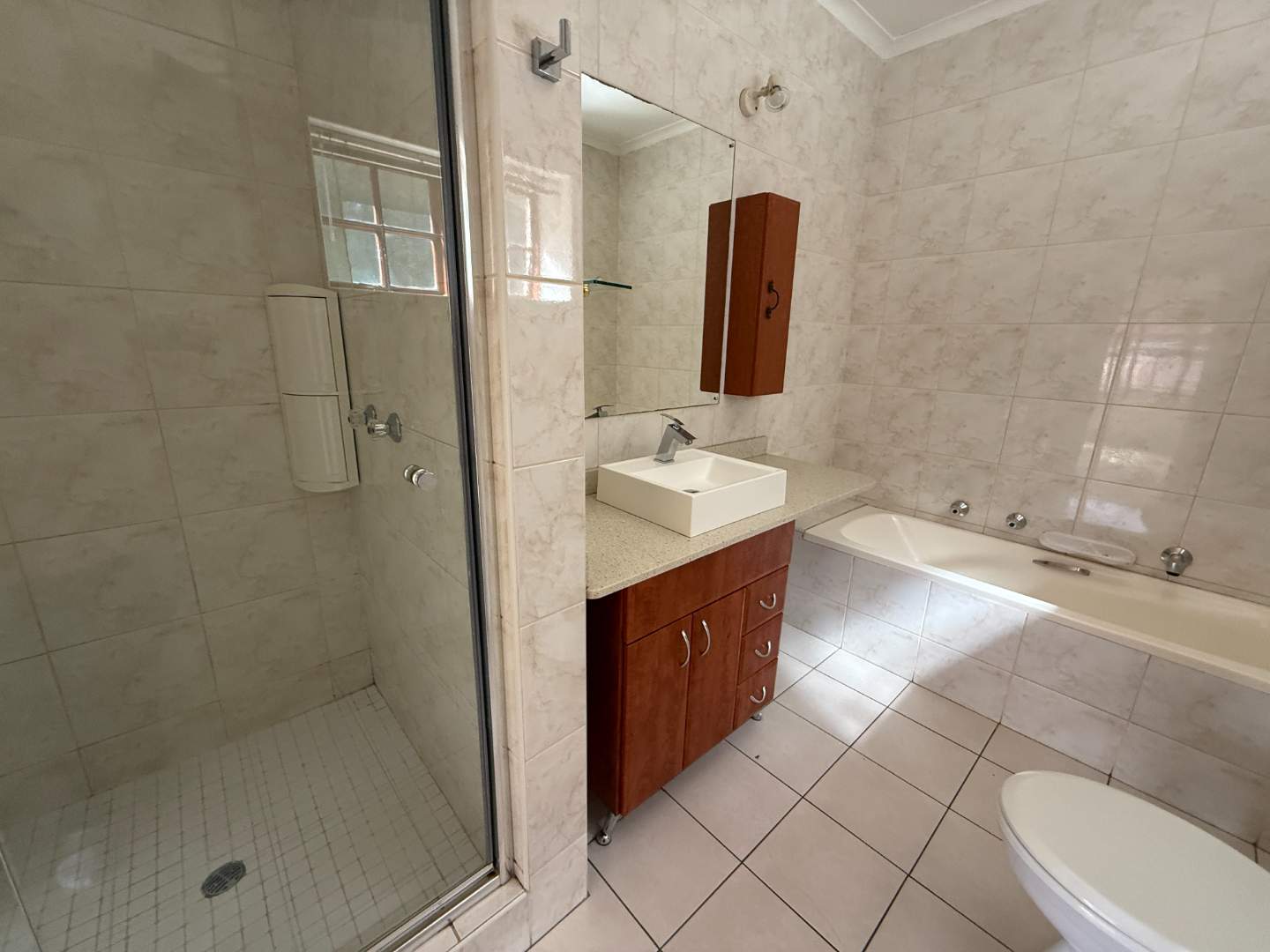2 neatly tiled bathrooms
